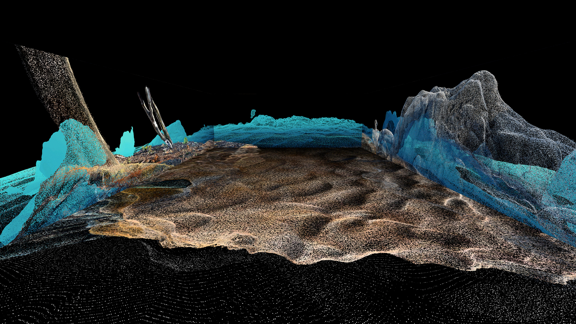 本作では、世界各地の3Dスキャンデータや衛星情報を活用し、デジタル空間において庭園を創造しています。