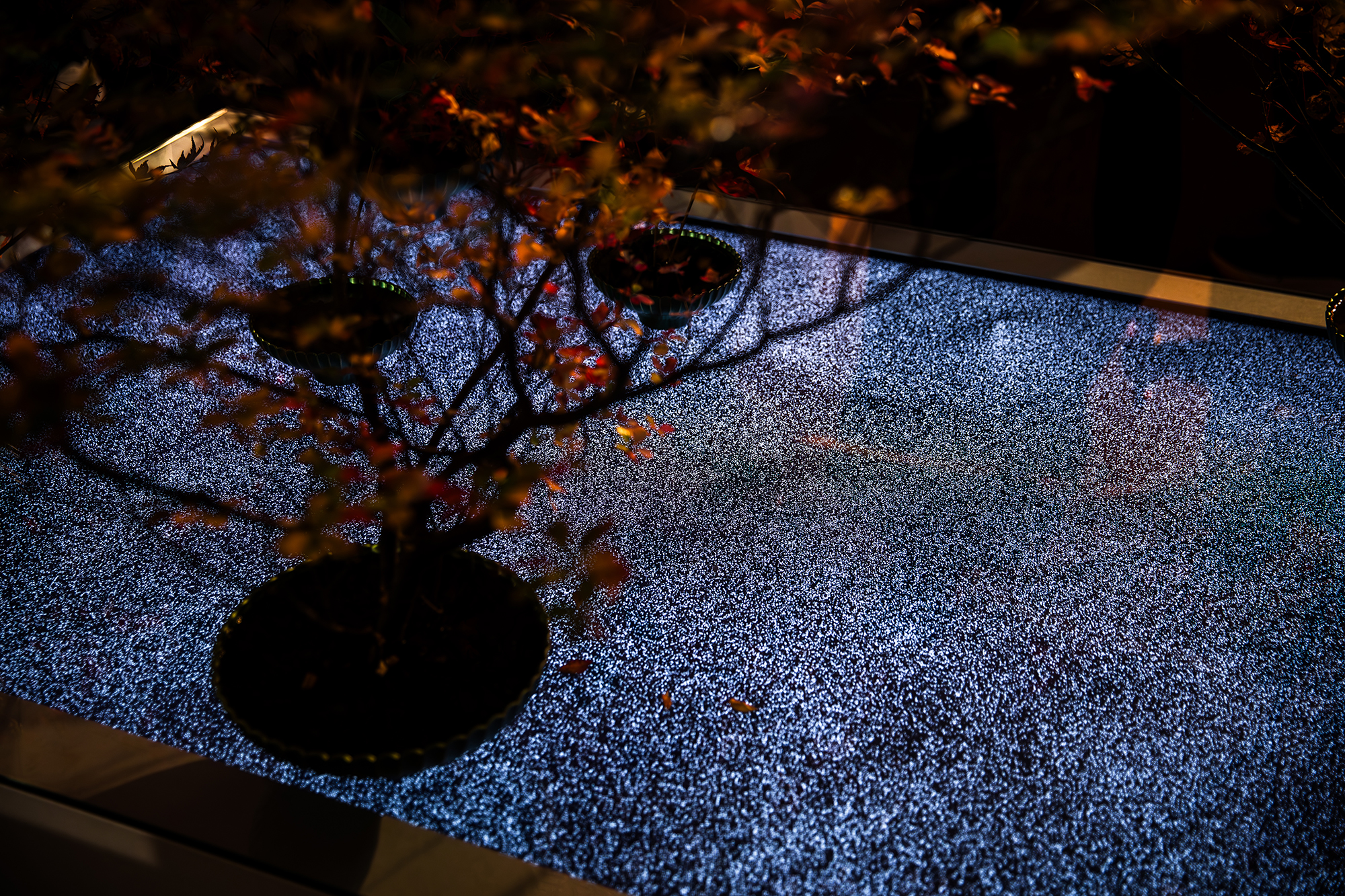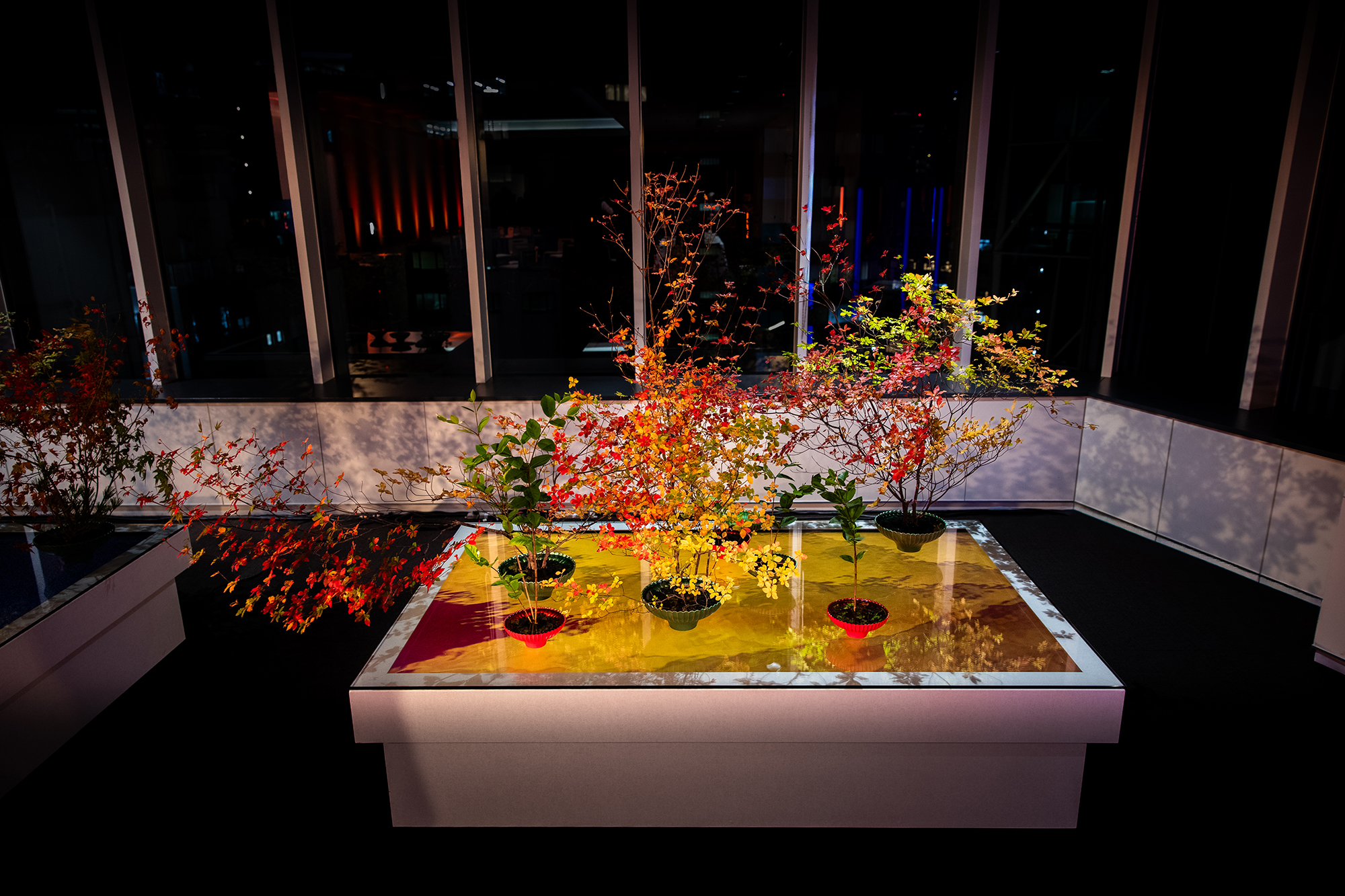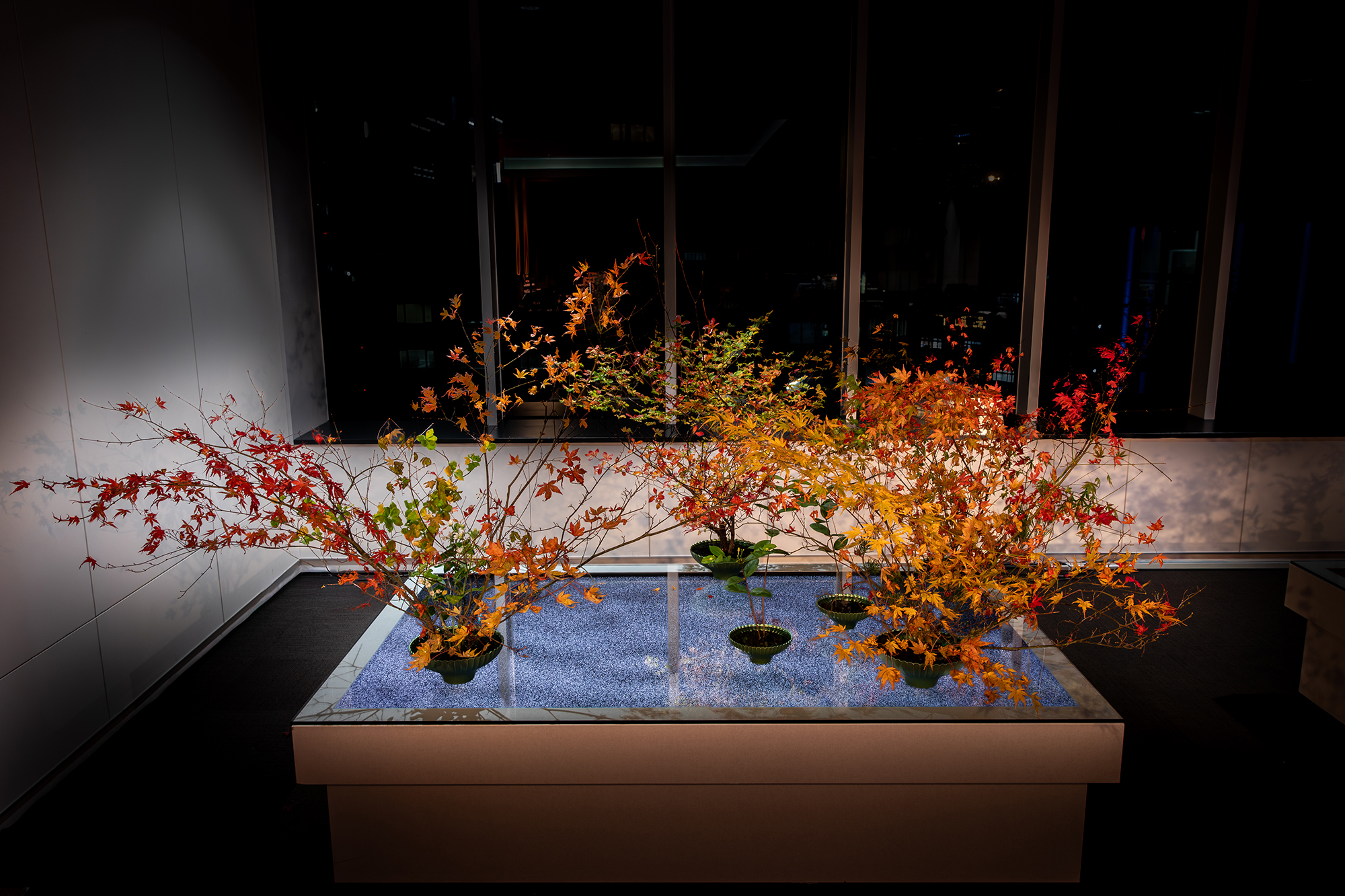 本作は、日本古来の風習である「紅葉狩り」を現代的ないけばなインスタレーションとして再構築した作品です。自然現象を愛でる行為に宿る「無常観」や「もののあはれ」といった日本的な哲学・美意識を根底に据え、観る者が言葉を介さずにそれらを感じ取る体験を目指します。